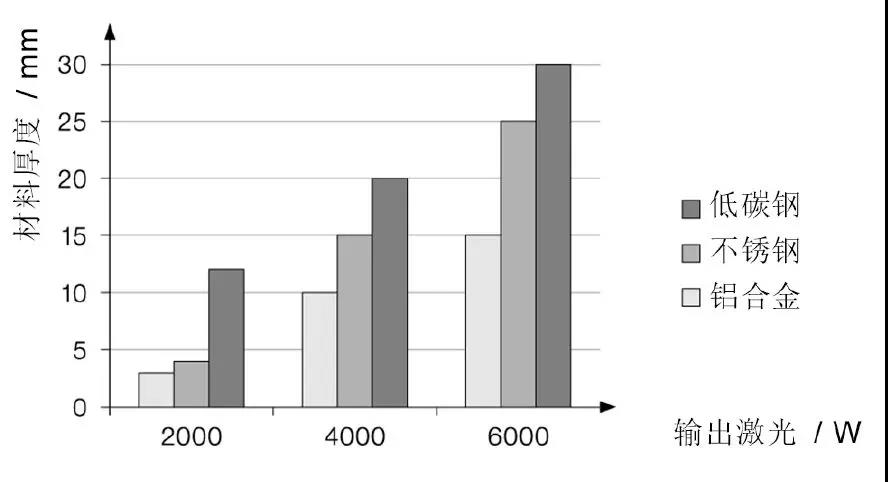 激光功率應(yīng)和加工類型、材料種類和厚度相匹配。功率必須足夠高以至于工件上的功率密度超出加工閾值。